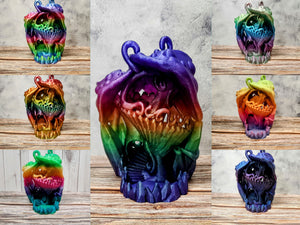 Rainbow Chameleon: Darker rainbow tones with green and light blue sparkles