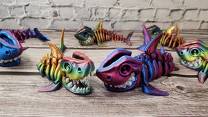 Crafted from high-quality materials, this shark skeleton is built to last. And with its movable joints, you can pose it in a variety of ways to create your own adventure. But that's not all! This shark also looks fintastic in our rainbow, magic, and triMagic materials. With a colorful and vibrant design, it's sure to make a splash in any collection.