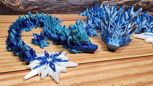 Beautifully crafted icy wonder, articulated winter dragons. Meticulously designed to mirror the intricate shape of a snowflake, these dragons are a fusion of nature's beauty and imaginative artistry.